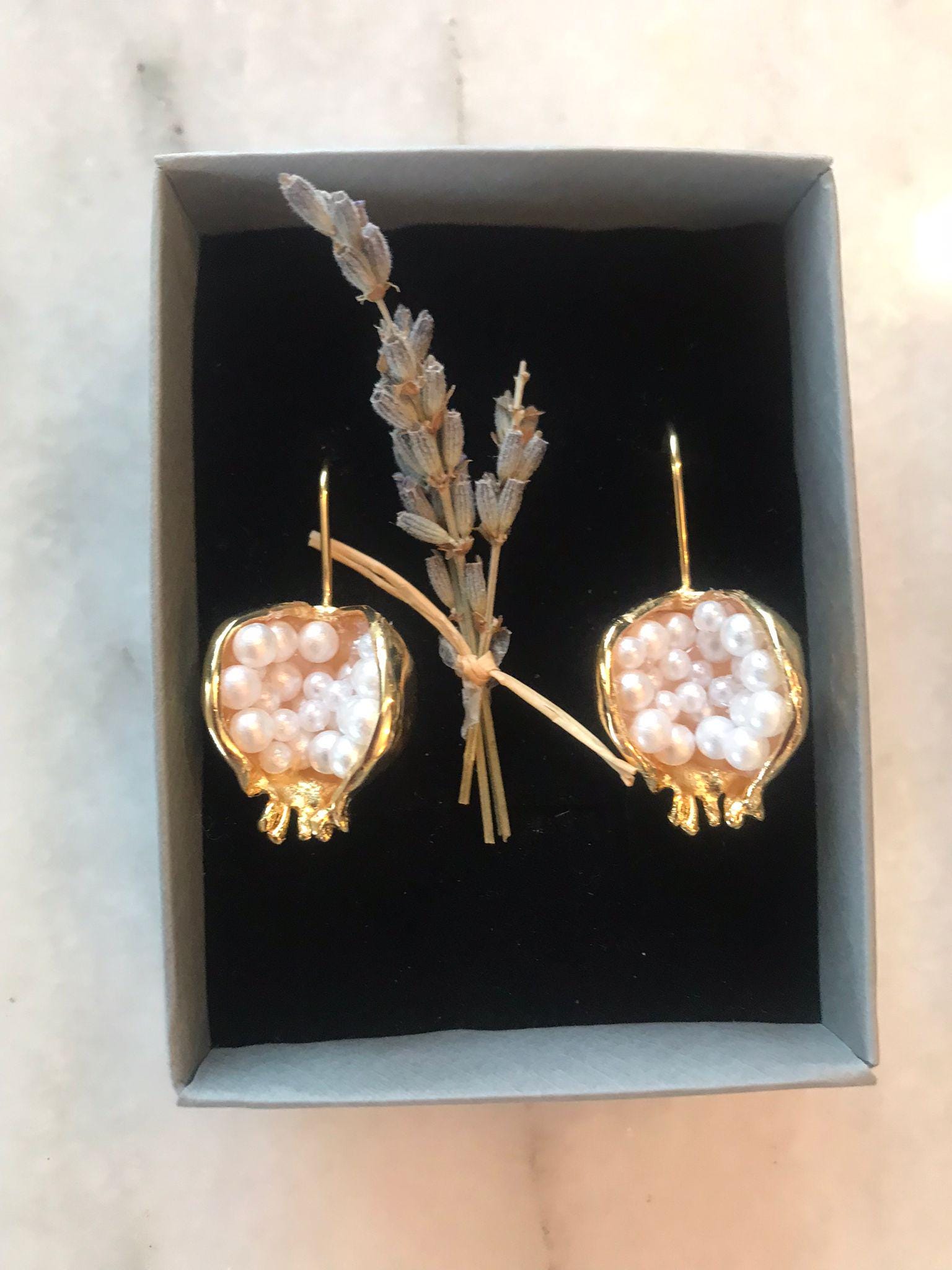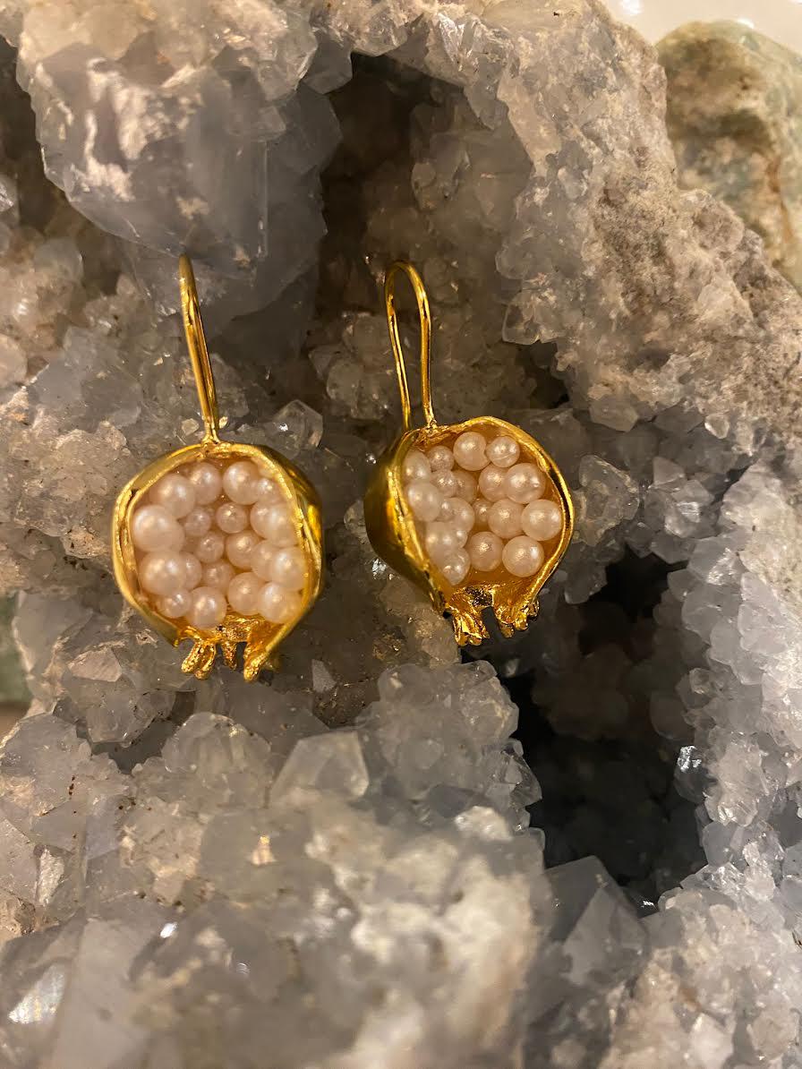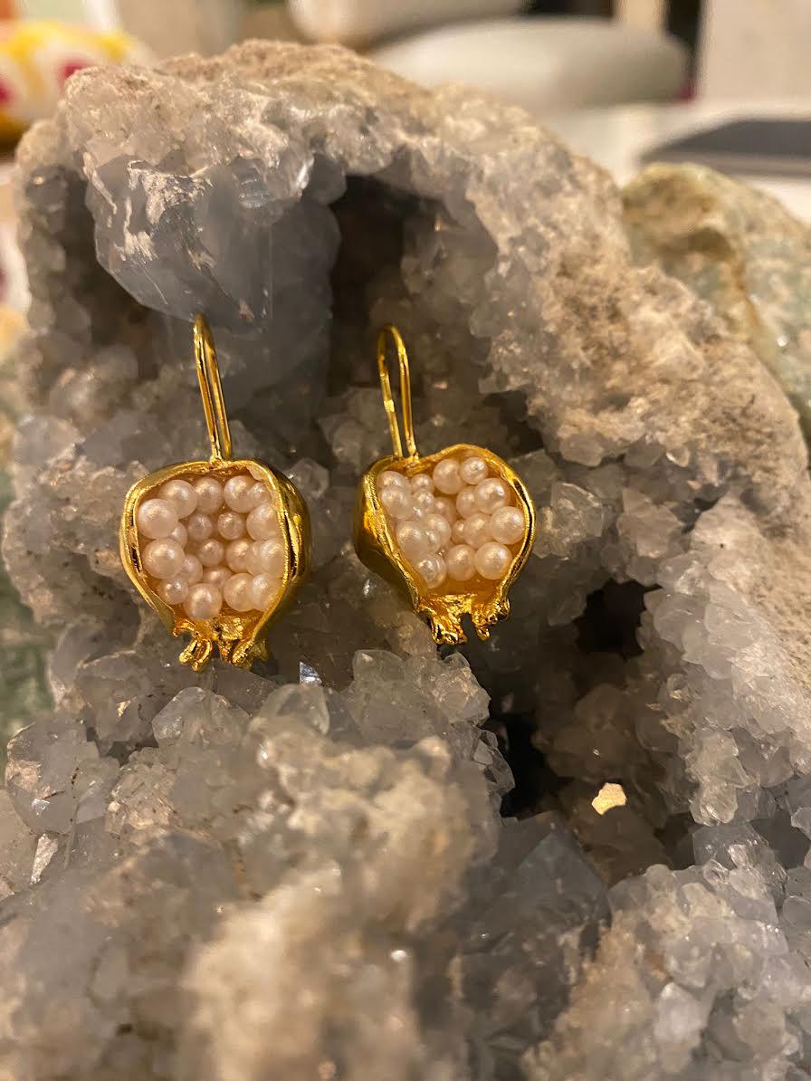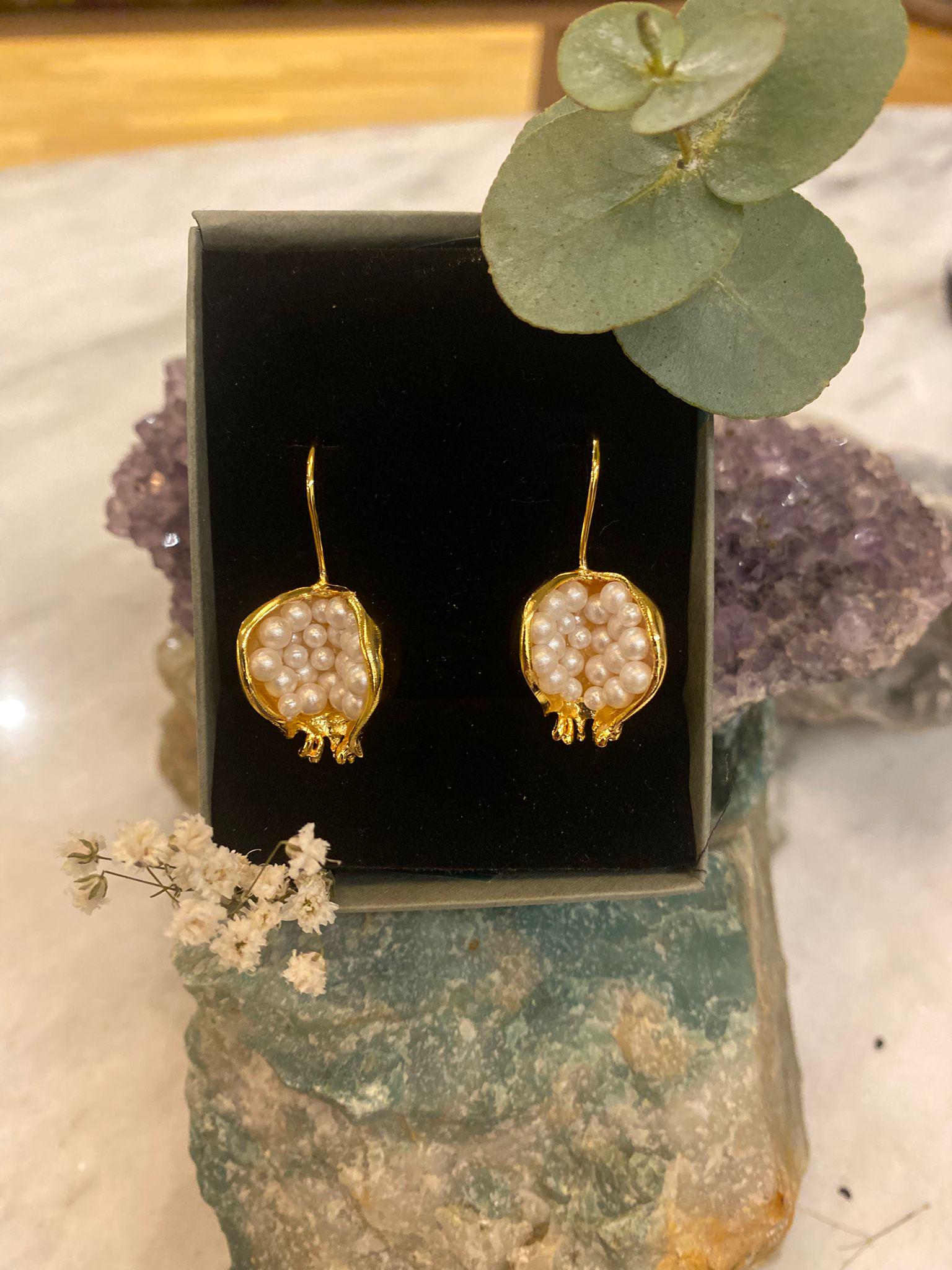 PEARL AND POMEGRANATE EARRINGSPearl is known as the first precious stone in human history. It has the distinction of being the most special gift of human history and the jewelery of the most special moments from past to present.