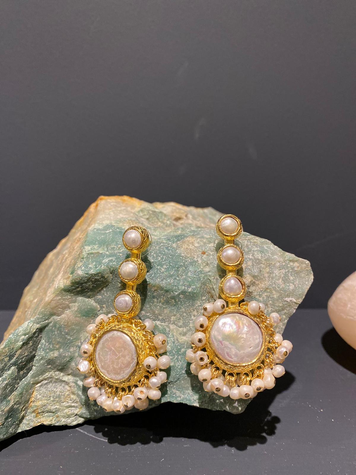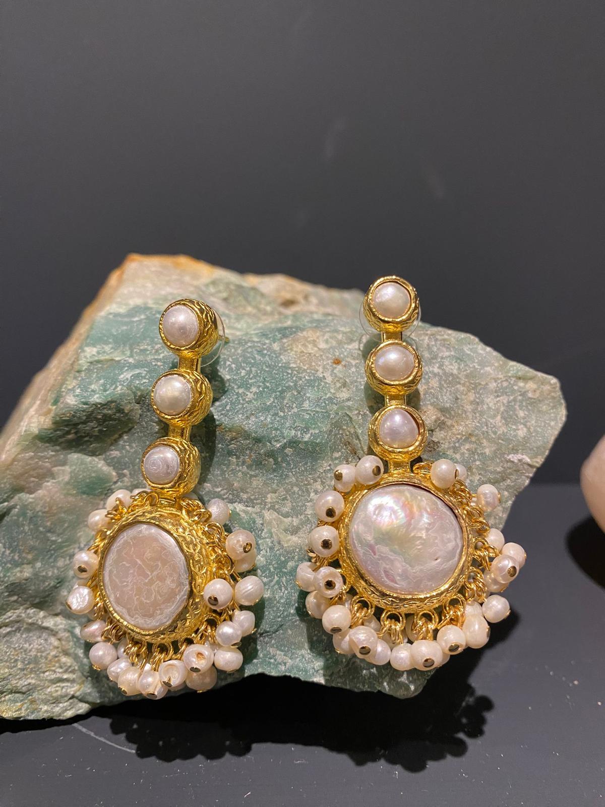 Bornz gold-plated freshwater pearl earrings.