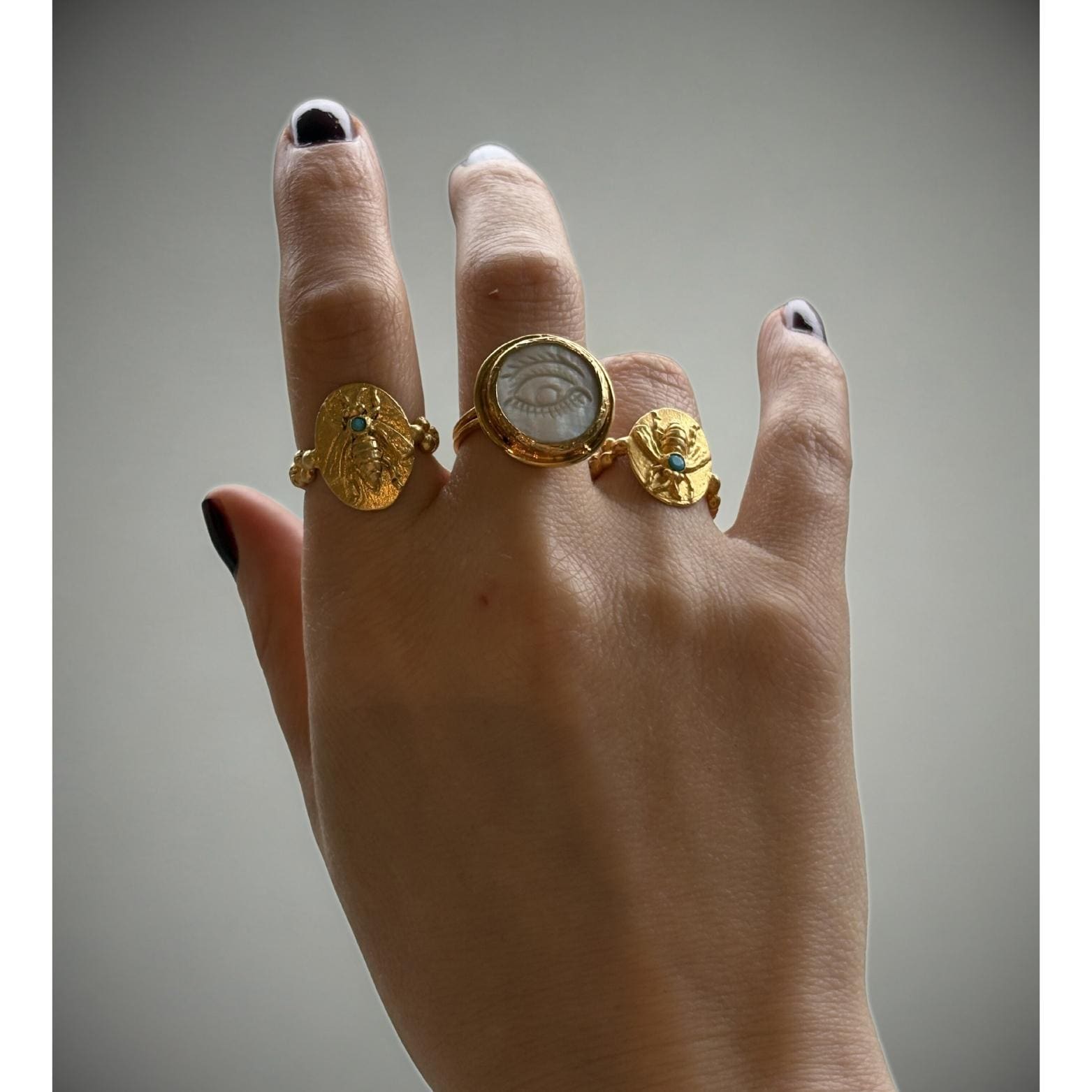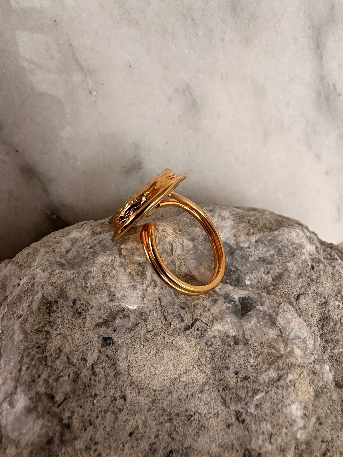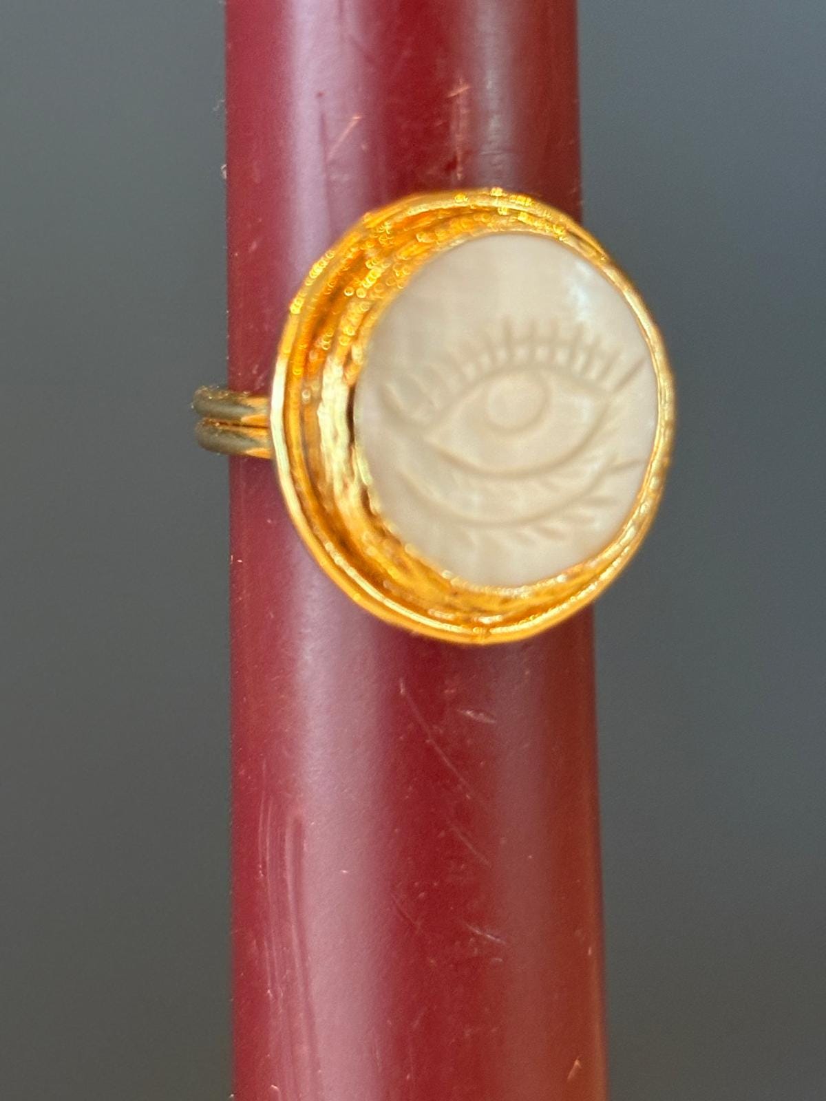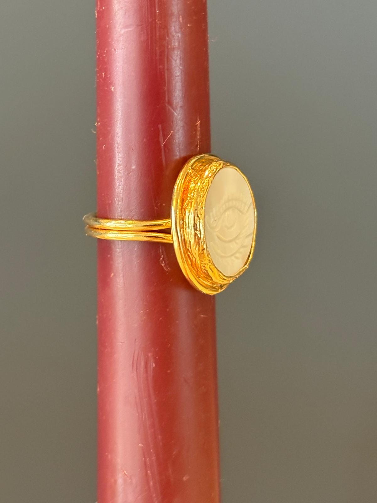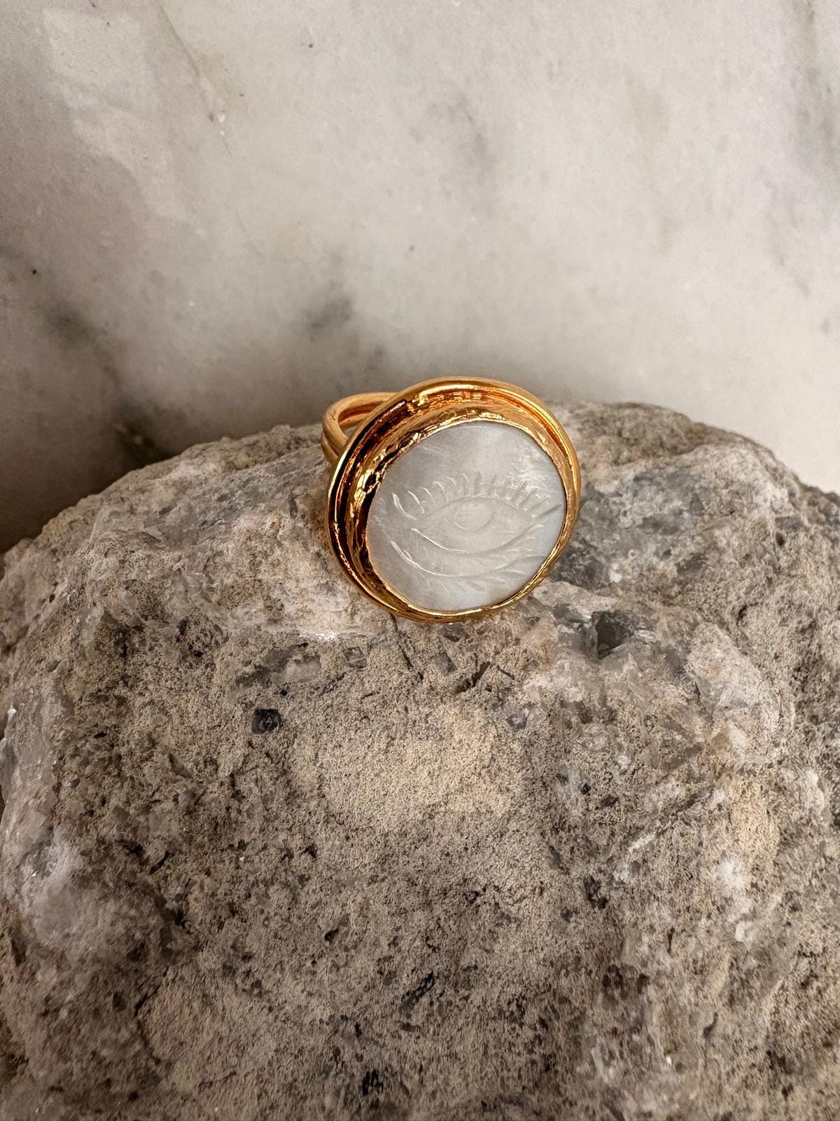 Moonstone Evil Eye Ring, Gold Plated Adjustable Ring, Mystic Protection Jewelry, Handmade Boho Minimal Ring, Gift for Her