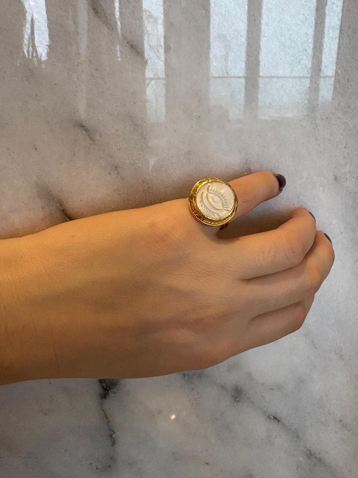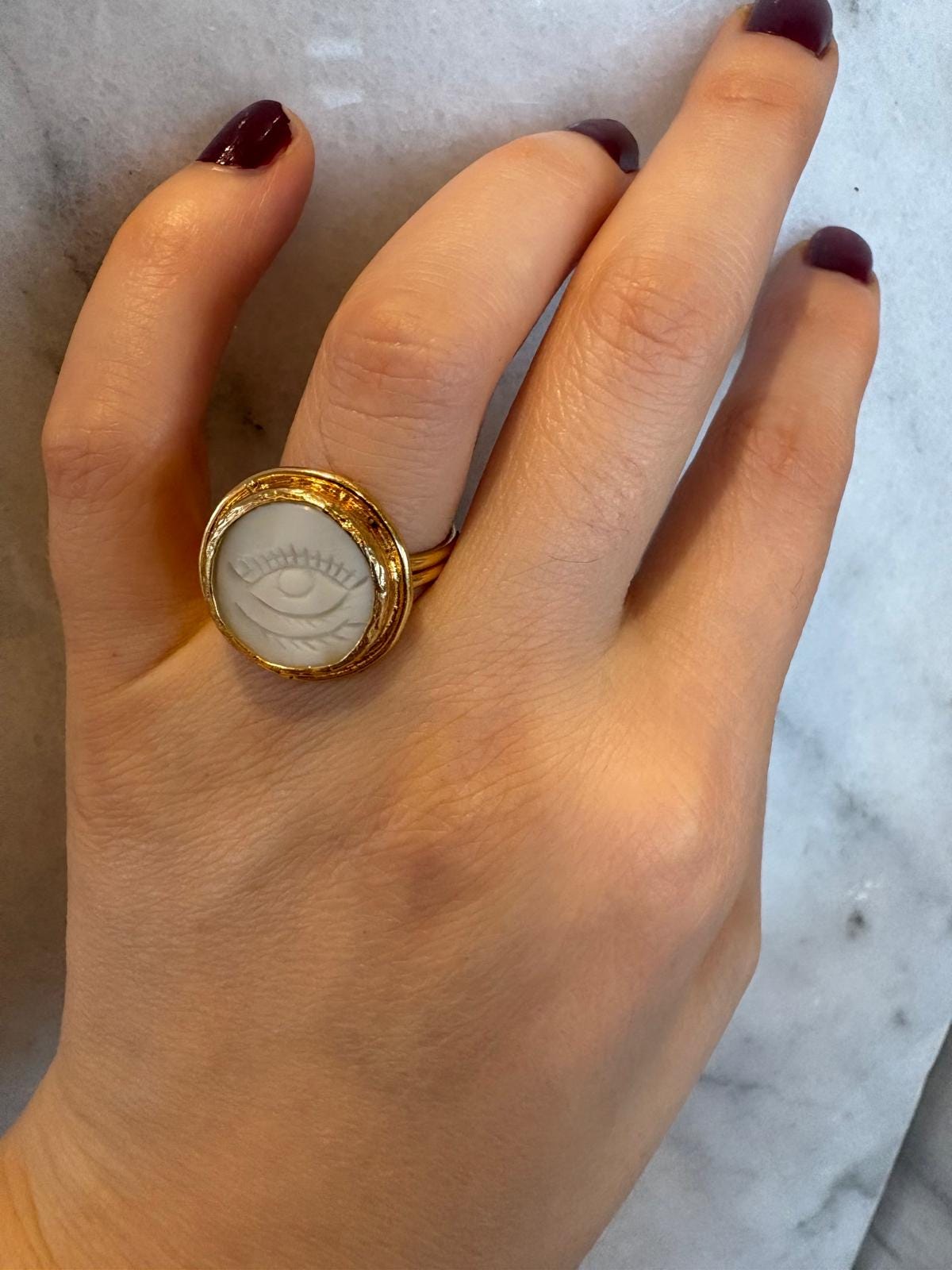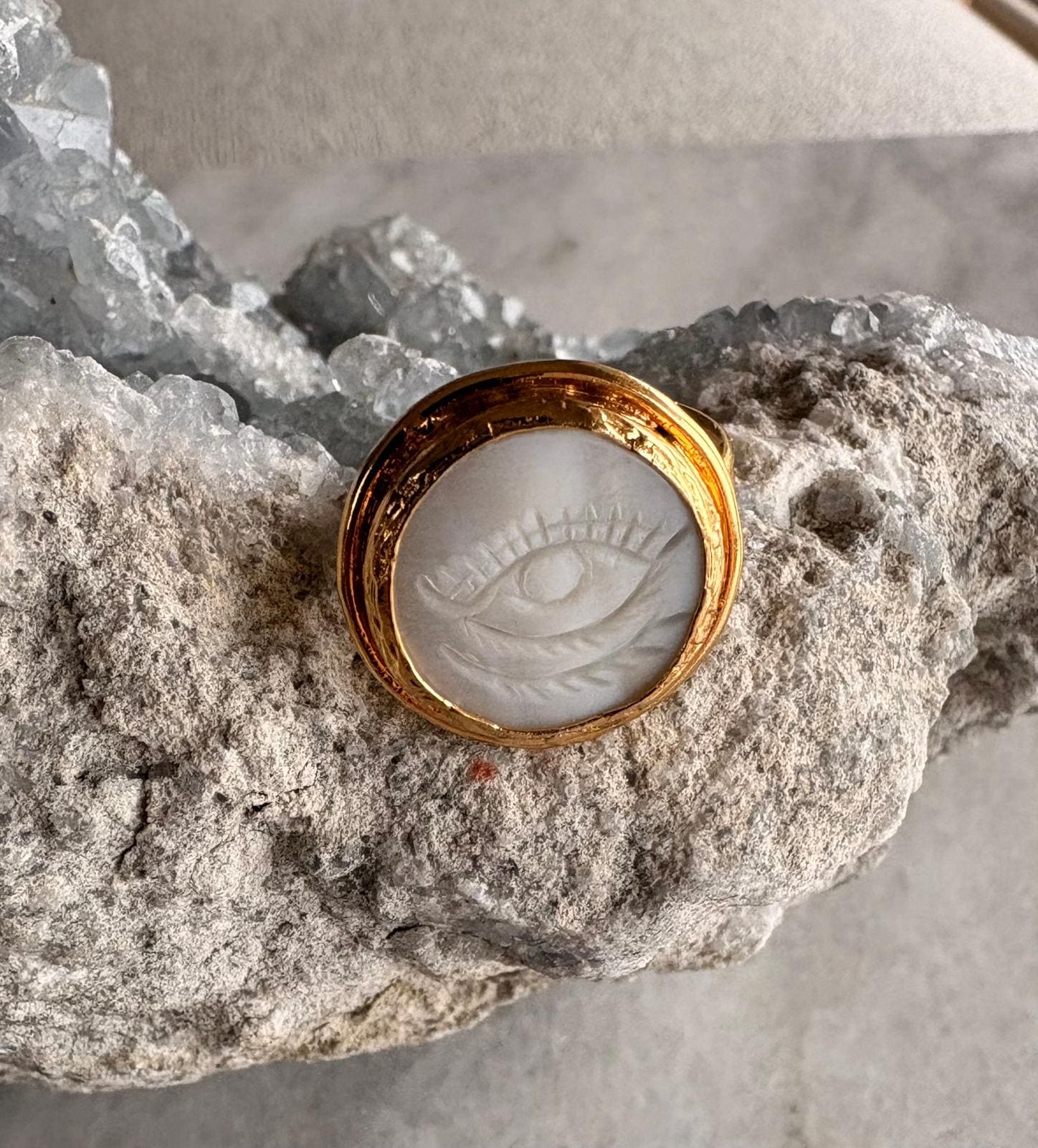 Featuring a carved moonstone with the timeless evil eye motif, it carries a soft, luminous glow—believed to protect your energy while bringing a sense of calm and clarity.